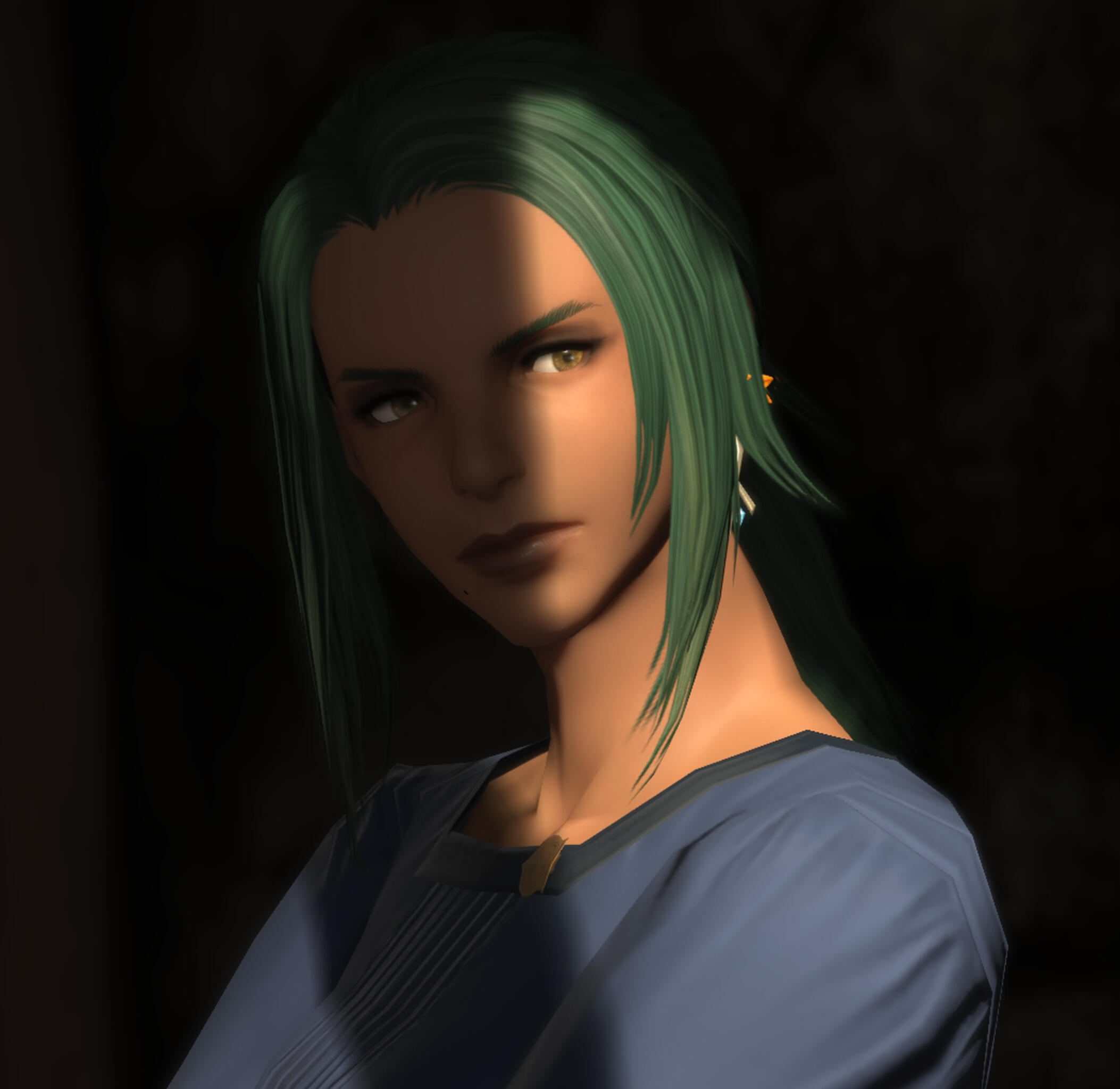 Avenrhi moves with the growing seasons, working to plant, prune, take in and preserve Nophica's bounty. She often takes up light adventuring (see: Pest Control) in exchange for extra surplus to send to her 'extended' family of Duskwights who took her in as a young girl.She is grown now. The ways she has adapted, dedicated herself to surviving, are more honest than they have been in her past. Each turn passes quicker than the last, and challenges her physical limits a little more.To see her at work in summer's zenith, you would never imagine the toll it takes on her. She is a lively and cheerful presence in the Noscean farms and Nophica's wells, with a seemingly tireless work ethic and winsome nature.Her carefree zeal withers with the frost into fatigue and fret over scarcity, as she retreats to her underground haven from the cold. She overwinters with the Zanthella family, in a neighboring of Issom-Har, where they run a small grocery.She remembers fading horrors of the times before, of conflict in the mountains, birdmen descending in balloons to raid caches and drive her people hungry out of the highlands. She remembers the Mad King of Ala Mhigo and the ones he sent out, also, to slaughter them in their sleep.The peace beneath the deep roots holds her safely now.It is a home worth keeping on with.